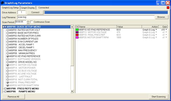 Drivemaster – Drivemaster is a Windows based program designed to make drive set-up, record keeping and trouble-shooting easy. Drive parameters can be extracted from a drive, reviewed, modified, printed or stored on disk, reloaded back into the same drive or copied to another drive. Data logging and graphing of drive parameters is also possible. Offline and online editing is supported. Drivemaster supports both Modbus serial communications and Ethernet / Modbus TCP communications. |
